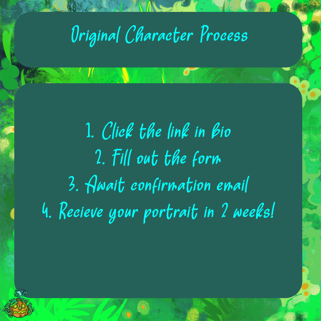 I provide a form that allows you to customize your OC portrait from top to bottom. After form completion, I can provide a quote through email, collect your fee, and get started.